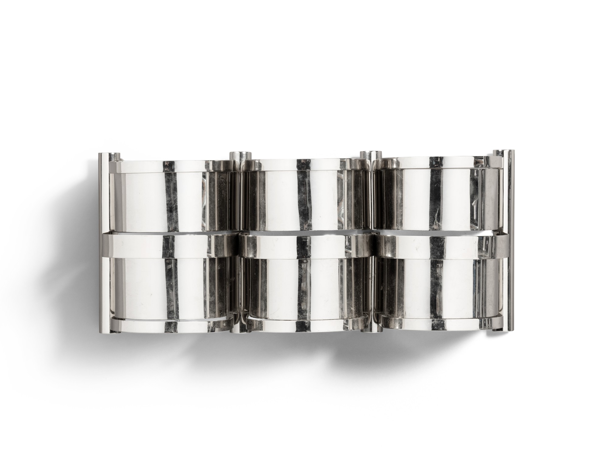 This French 'Wall light' from circa 1980 is a functional sculptural piece that merges lighting design with artistic intent. The work demonstrates the aesthetic sophistication of late twentieth-century French design and craftsmanship.