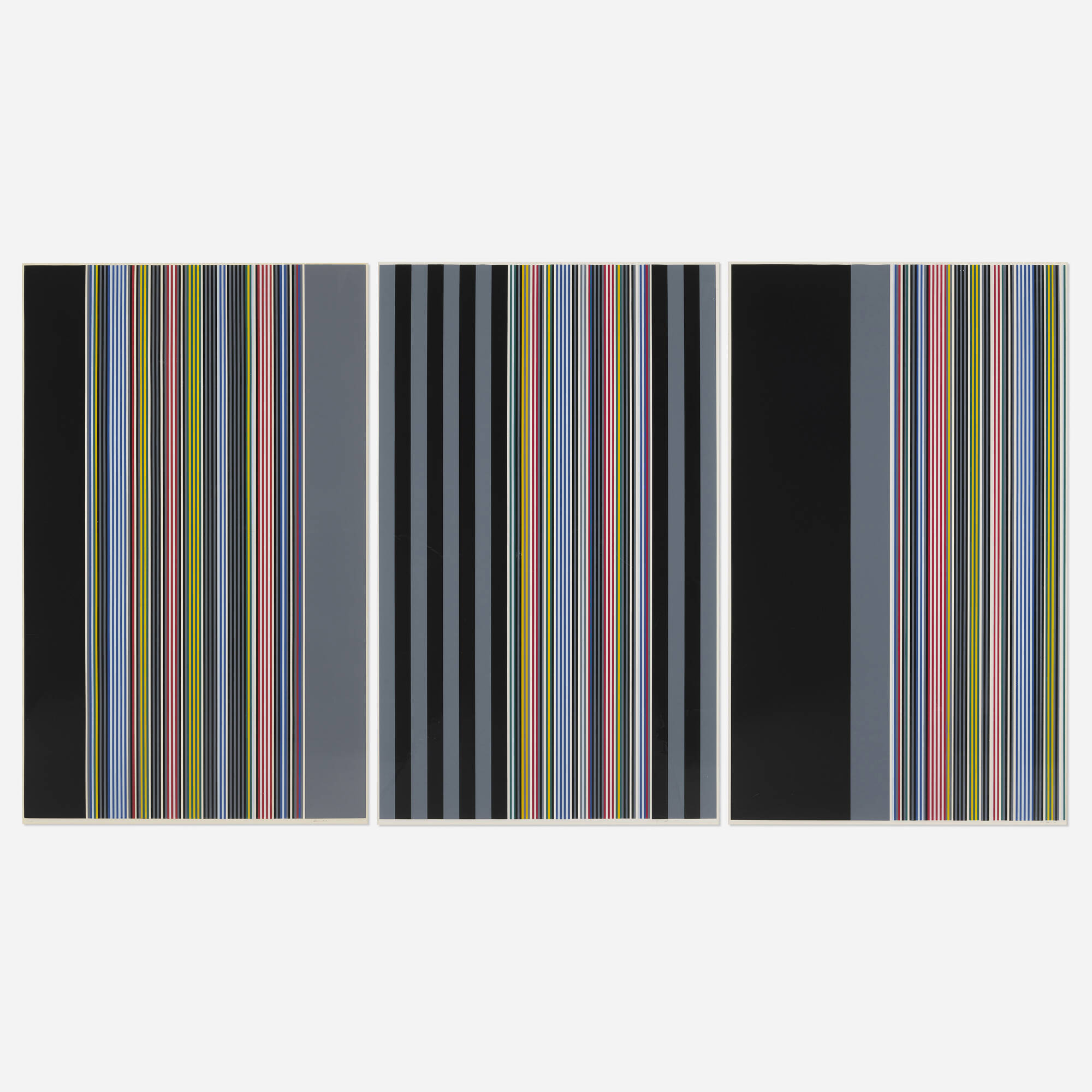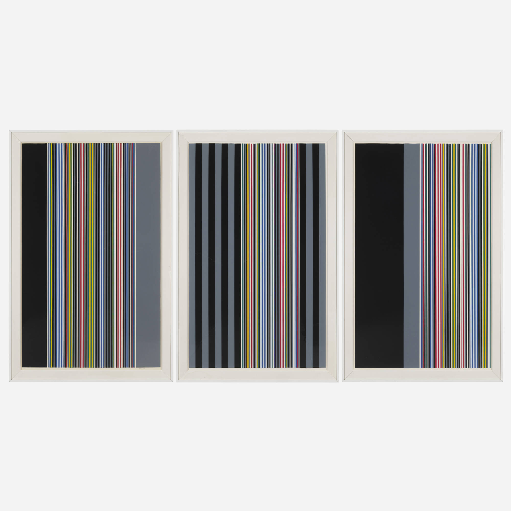 This triptych consists of three related screenprints collectively known as the Black Watch Series, created in 1974. Each work features Davis's signature bold vertical stripes in a carefully orchestrated color palette. The series showcases the artist's mastery of color field painting translated into the screenprint medium. These works demonstrate Davis's exploration of how colors interact and vibrate when placed in close proximity. The Black Watch Series represents a significant moment in Davis's career of systematic color exploration.