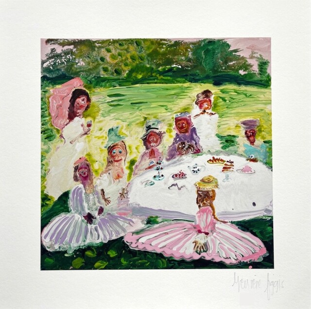 This archival pigment print on cotton paper captures a picnic scene with the precision and archival quality of museum grade materials. The artist's proof designation indicates this is a trial print before final production. The subject matter suggests leisure and outdoor relaxation rendered through high quality printmaking techniques. Cotton paper provides a luminous surface that enhances the pigment colors and ensures longevity. The 2022 date places this work in the artist's recent production period.