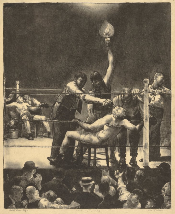 Boxing drama reaches its peak as Bellows captures the brutal beauty and raw energy of prizefighting, the subject that made him famous in American art.