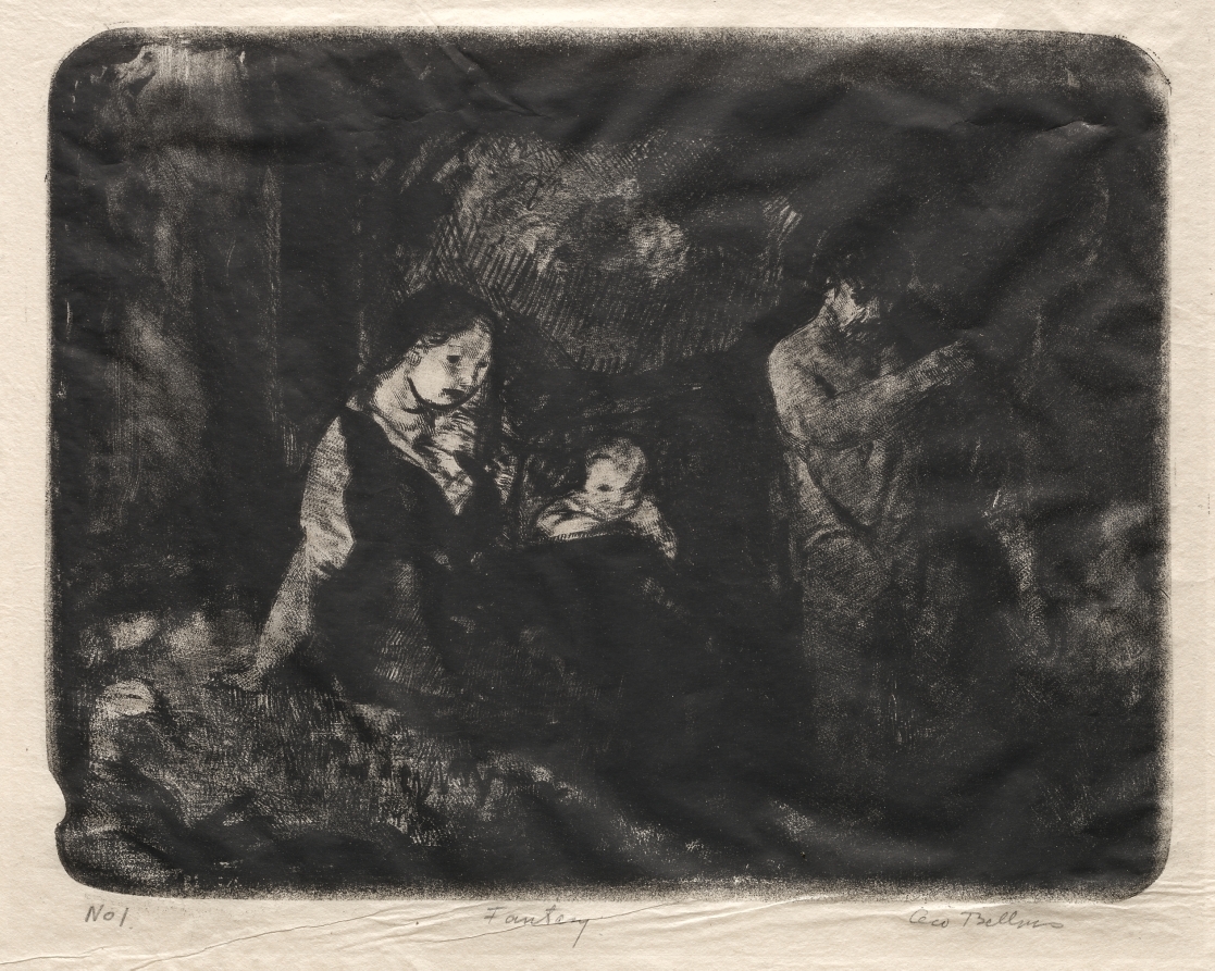 "Fantasy" is a lithograph by American realist painter George Bellows, created in the early 20th century during his prolific period working in the medium. The print exemplifies Bellows' bold compositional style and dramatic use of light and shadow, characteristics that defined his artistic practice across painting and printmaking. Like much of his lithographic work, the piece demonstrates his ability to capture dynamic movement and emotional intensity through the expressive possibilities of the stone printing technique.