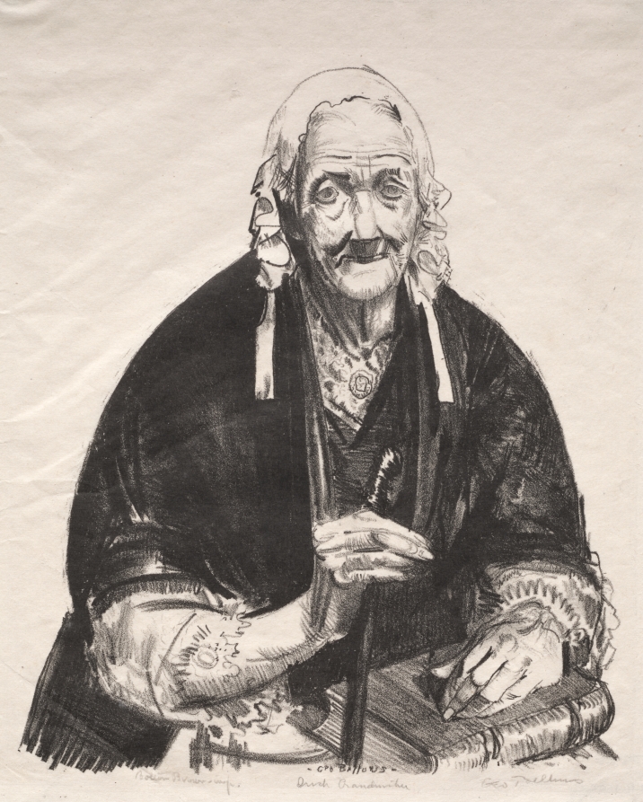Sympathetic portrait reflects Bellows' interest in depicting working-class subjects with dignity, using lithography's capacity for subtle tonal modeling.