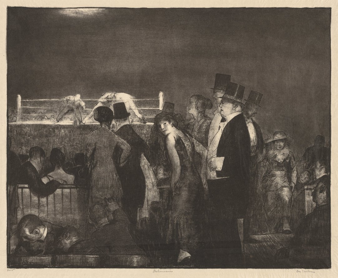 Capturing the anticipation before the main event, this work shows Bellows' interest in the entire spectacle of boxing, from crowd psychology to athletic preparation.