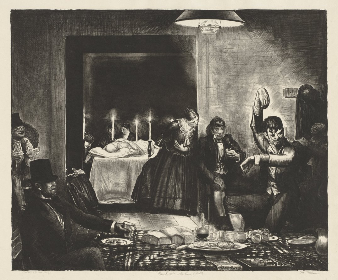 Drawing inspiration from commedia dell'arte traditions, this haunting work shows Bellows exploring theatrical and literary themes beyond his typical American subjects.