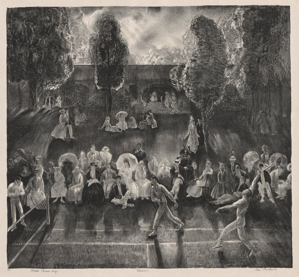 One of several sporting subjects from this productive period, the work shows Bellows applying his dynamic visual language to the genteel world of tennis.