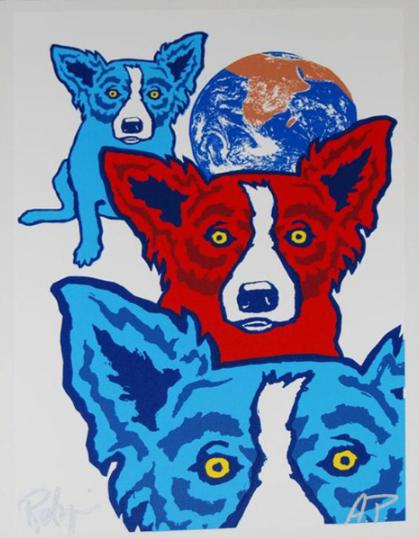 This compelling work by George Rodrigue presents a haunting exploration of brotherhood and mortality rendered in his signature style. The composition features two figures rendered in deep shadows against a luminous white ground, their forms defined by bold gestural marks that suggest both intimacy and distance. The title "Between My Good Brothers: on White" speaks to the complex emotional terrain that Rodrigue navigates, positioning the viewer in the space between two figures bound by blood yet separated by something ineffable. The white background becomes not merely a negative space but an active presence, suggesting absence, loss, or transcendence depending on the viewer's interpretation. Rodrigue's work demonstrates his mastery of tonal contrast and psychological depth, qualities that have defined his career as one of contemporary art's most introspective voices. The painting rewards sustained looking, revealing layers of meaning beneath its deceptively simple composition. For collectors drawn to figurative work that grapples with universal human experiences rendered through a deeply personal lens, this piece represents a significant example of Rodrigue's mature practice. The work's modest scale makes it accessible while its emotional weight ensures it commands attention in any serious collection.