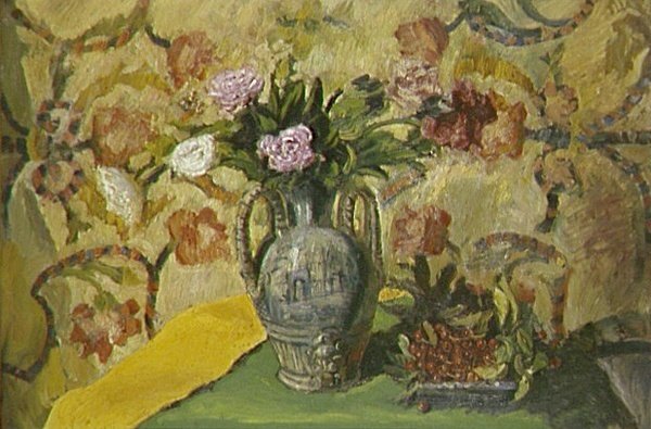 Luscious brushwork celebrates the sensual pleasures of color and texture in Dufrenoy's approach to traditional still life painting.