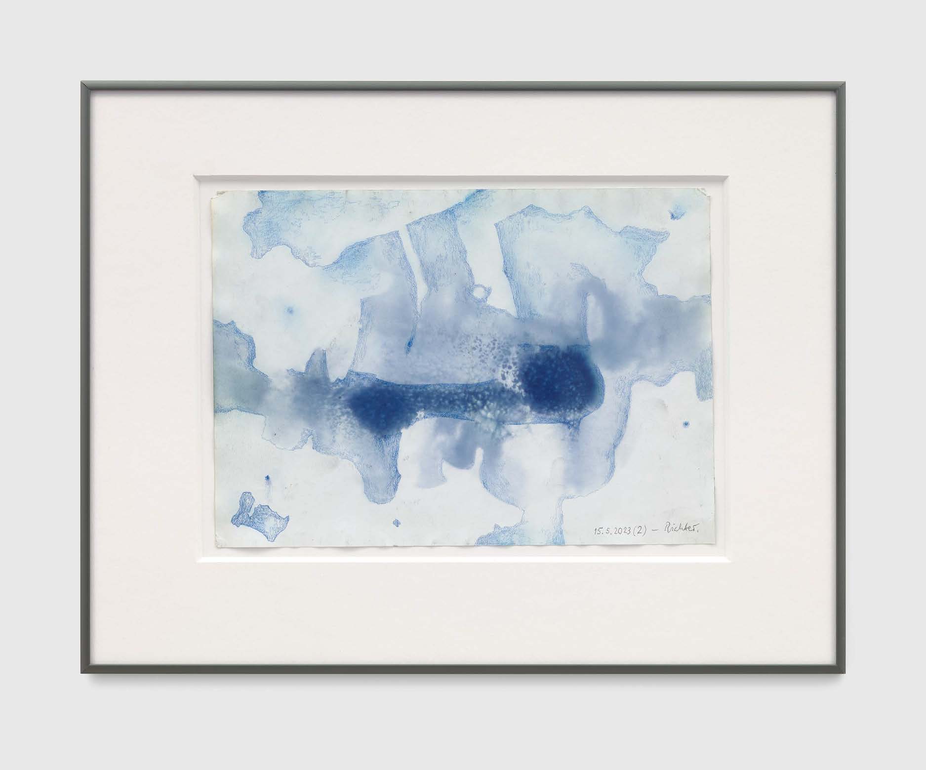 This work stands out among the 2023 drawings for its expanded palette, combining colored ink, pencil, and colored pencil to introduce warmth, hue, and chromatic tension into the typically austere late series. The interplay of three distinct media creates a visual dialogue between fluid washes, dry line, and waxy pigment. Richter's lifelong exploration of color — central to his iconic Color Charts and abstract paintings — here resurfaces in a condensed, intimate format. The work suggests that even in his most personal late practice, the artist cannot fully resist the seductive complexity of color.