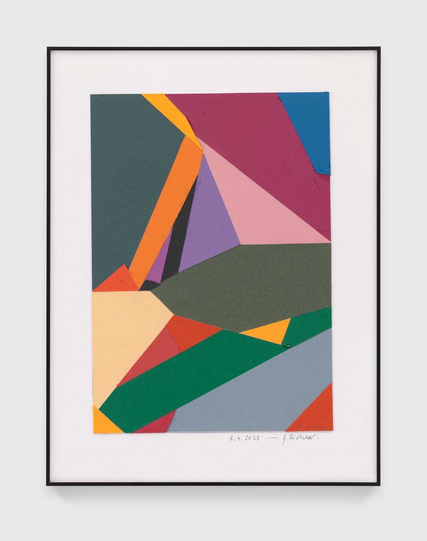 Created just days after 5.4.2023, this second collage from early April 2023 demonstrates Richter's prolific output even in his later years, often producing multiple works within the same period. The numbered dating system he employs treats each collage as part of a continuous, chronological body of work rather than isolated objects. This approach echoes his Atlas project, in which accumulation and seriality are central concerns. The collage medium offers spontaneity and layering, qualities that complement his broader investigation of perception and image-making.