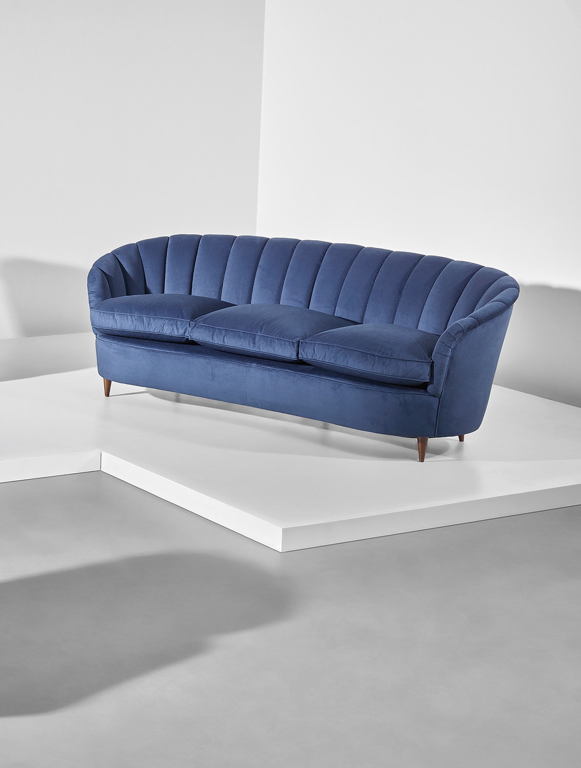A rare and refined sofa designed by the celebrated Italian architect and designer Gio Ponti, exemplifying his signature blend of elegance, lightness, and sculptural form. The piece reflects Ponti's lifelong pursuit of beauty through clean lines and a harmonious balance between functionality and artistic expression. A testament to his enduring influence on modernist Italian design, this sofa stands as a coveted collector's piece.