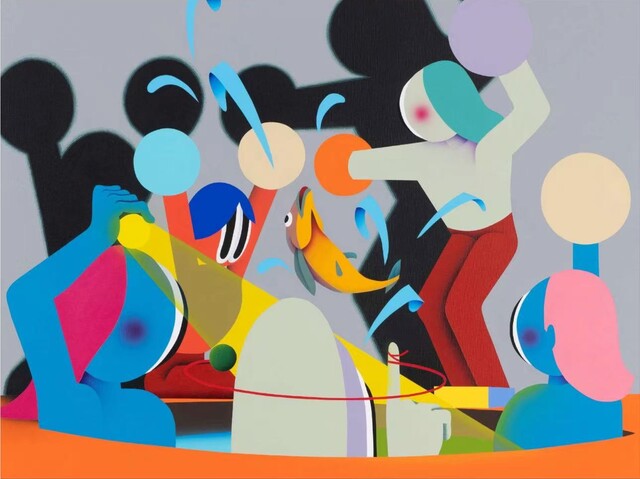 Push Start to Continue is an acrylic painting on canvas by Gosha Levochkin from 2020. The work references video game culture and the nostalgic call to action found on arcade machines. It examines themes of continuation, participation, and human interaction with technology. The title suggests a commentary on the cyclical nature of digital engagement and entertainment.