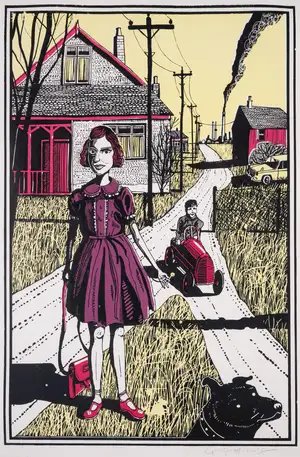 Grayson Perry's "Plate 1, from Six Snapshots of Julie" is a woodcut printed in colours created in 2015 as part of a series exploring portraiture and identity through the artist's distinctive decorative aesthetic. Published by The Paragon Press in an edition of 68, the work demonstrates Perry's characteristic blend of fine art printmaking with patterns and motifs that elevate everyday subjects into visually complex compositions. The substantial sheet size of 722 by 485 millimetres allows the intricate details of the woodcut medium to command significant presence on the wall.