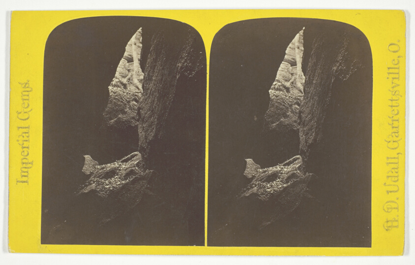 The photographer's romantic title reflects 19th-century tendency to anthropomorphize natural formations, while the stereo format provides viewers with an immersive sense of the cave's mysterious interior.