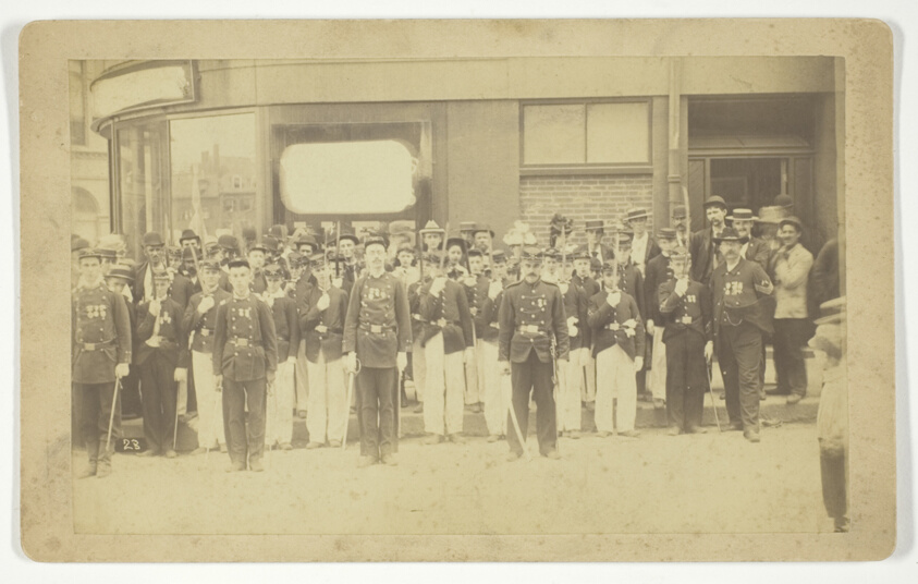 Military portraiture meets early photography in this group daguerreotype, documenting uniformed men with the formal compositional style typical of mid-19th-century studio photography.