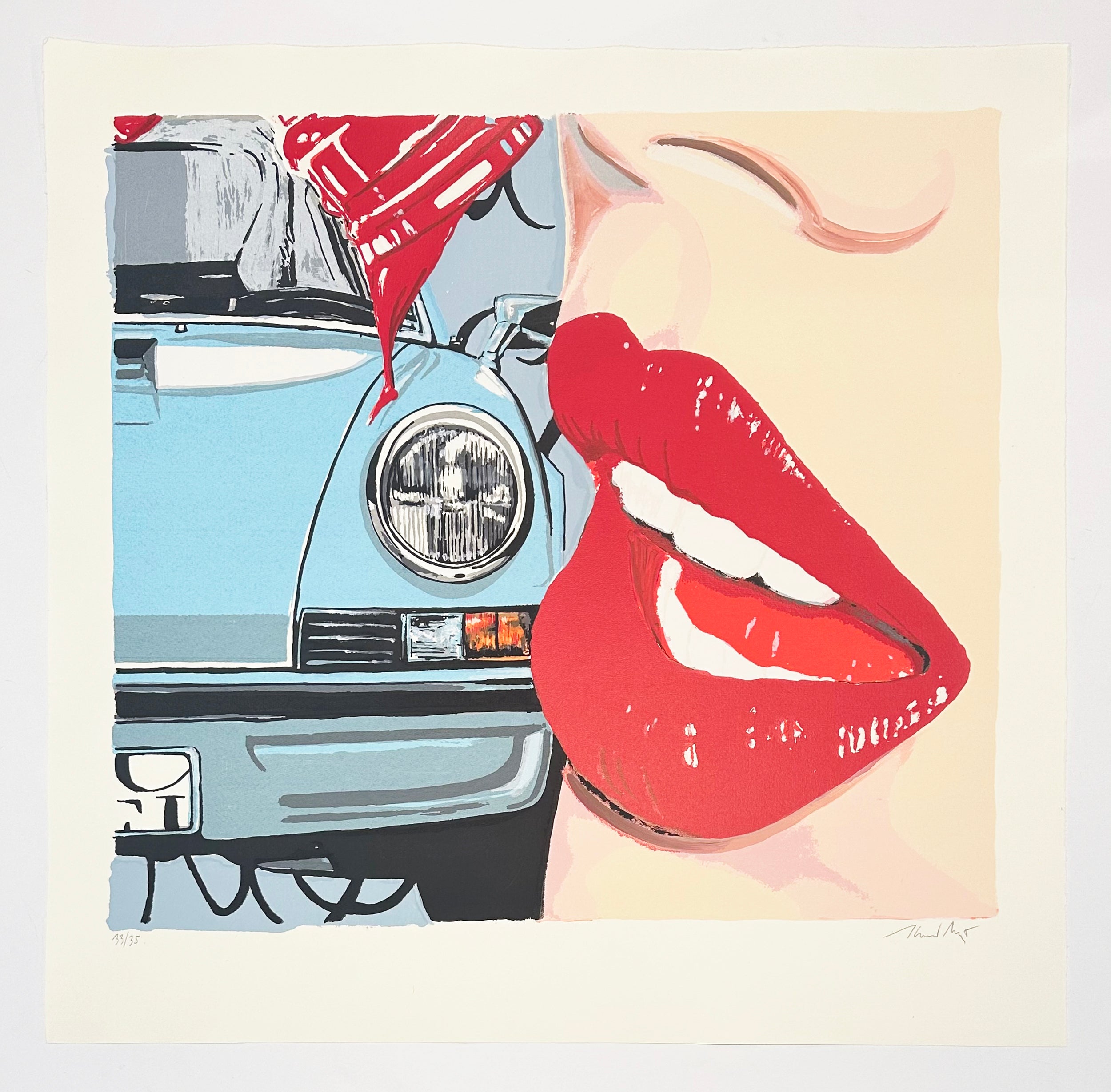 Heiner Meyer, Red Kiss, 2024, Signed, Screenprint on handmade paper, Edition 33/35, 34 1/2" x 35 1/2" Framed Size, 30 5/8" x 31 1/4" Sheet Size, 24 3/4" x 27 1/4" Image Size
