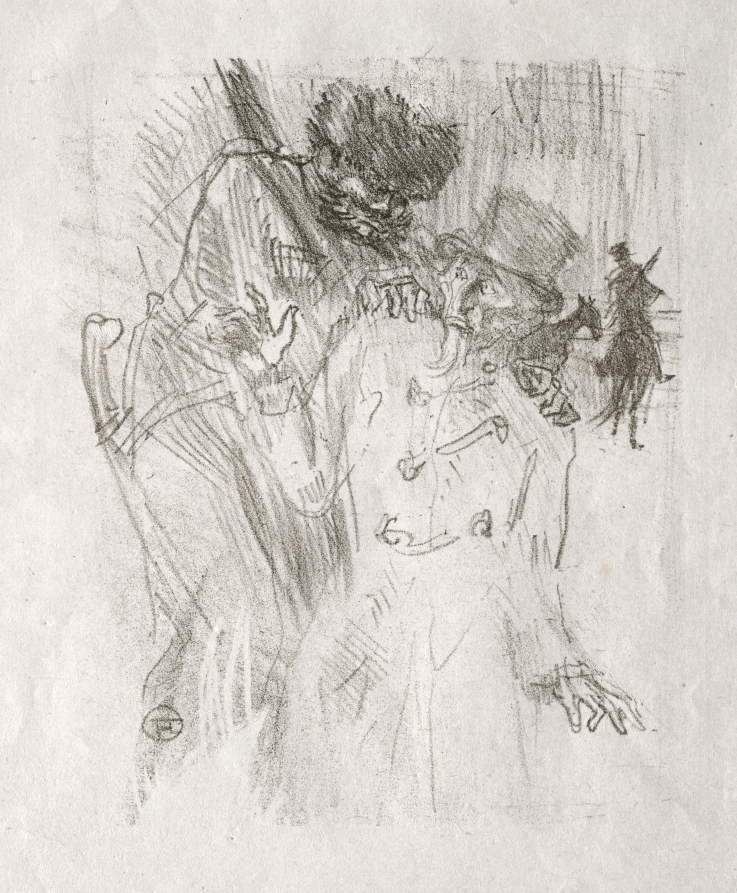 Illustrating a theatrical work, the lithograph shows Toulouse-Lautrec's engagement with contemporary Jewish themes and his ability to adapt his style to literary subjects.