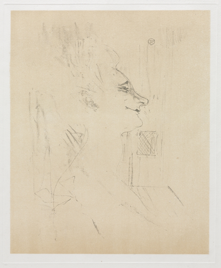 Bold lithographic techniques convey the theatrical excess of cabaret star Yvette Guilbert in an intoxicated state, showcasing the artist's unflinching documentation of Montmartre's seedier entertainments.