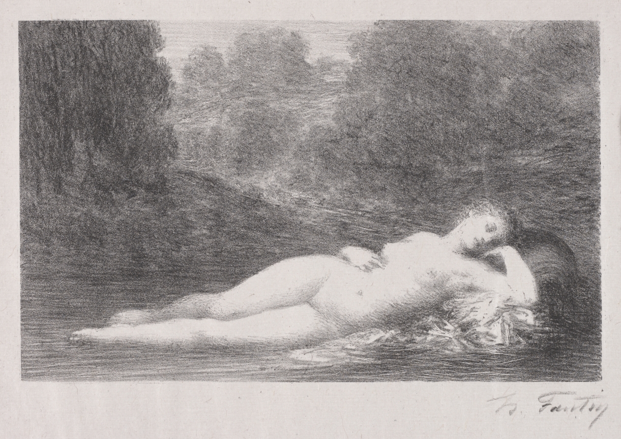 Demonstrating Fantin-Latour's skill in depicting the human form within dreamlike settings, this lithograph captures a moment of languid beauty and contemplation.