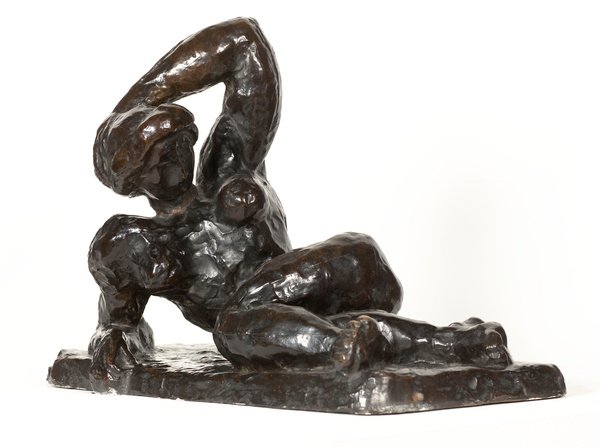 Cast in bronze, this three-dimensional work translates the artist's painterly approach to the human form into sculptural mass and volume.