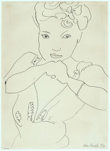 Executed in Chinese ink during the final phase of the artist's career, this frontal portrait demonstrates the master's ability to convey profound spirituality through minimal, flowing lines.