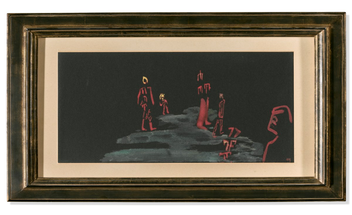 LITERATURE A. Pacquement, Henri Michaux Peintures, Milan, 1993, p. 314, No. 62 (illustré en couleurs p. 74). EXHIBITED Paris, Galerie Pierre Loeb, Peintures nouvelles d'Henri Michaux, novembre 1938. Paris, Galerie de l'Abbaye, Henri Michaux, juin 1942. Charleroi, Palais des Beaux-Arts (septembre-octobre); Gand, Palais des Beaux-Arts (novembre-décembre); Bruxelles, Palais des Beaux-Arts (janvier-février), Henri Michaux Rétrospective, 1971-1972, No. 58. Saragosse, Centro de expositiones y congresos, Henri Michaux: dibujos, acuarelas, gouaches, acrilicos, février-mars 1989, p. 51, No. 2. FURTHER DETAILS Cette œuvre sera incluse dans le catalogue raisonné en préparation par Micheline Phankim, Rainer Michael Mason et Franck Leibovici, sous le numéro hm6822. Conditions of sale Brought to you by Elisabetta Vitullo Junior Specialist, Head of Day Sale EVITULLO@CHRISTIES.COM +33 (0)1 40 76 85 68