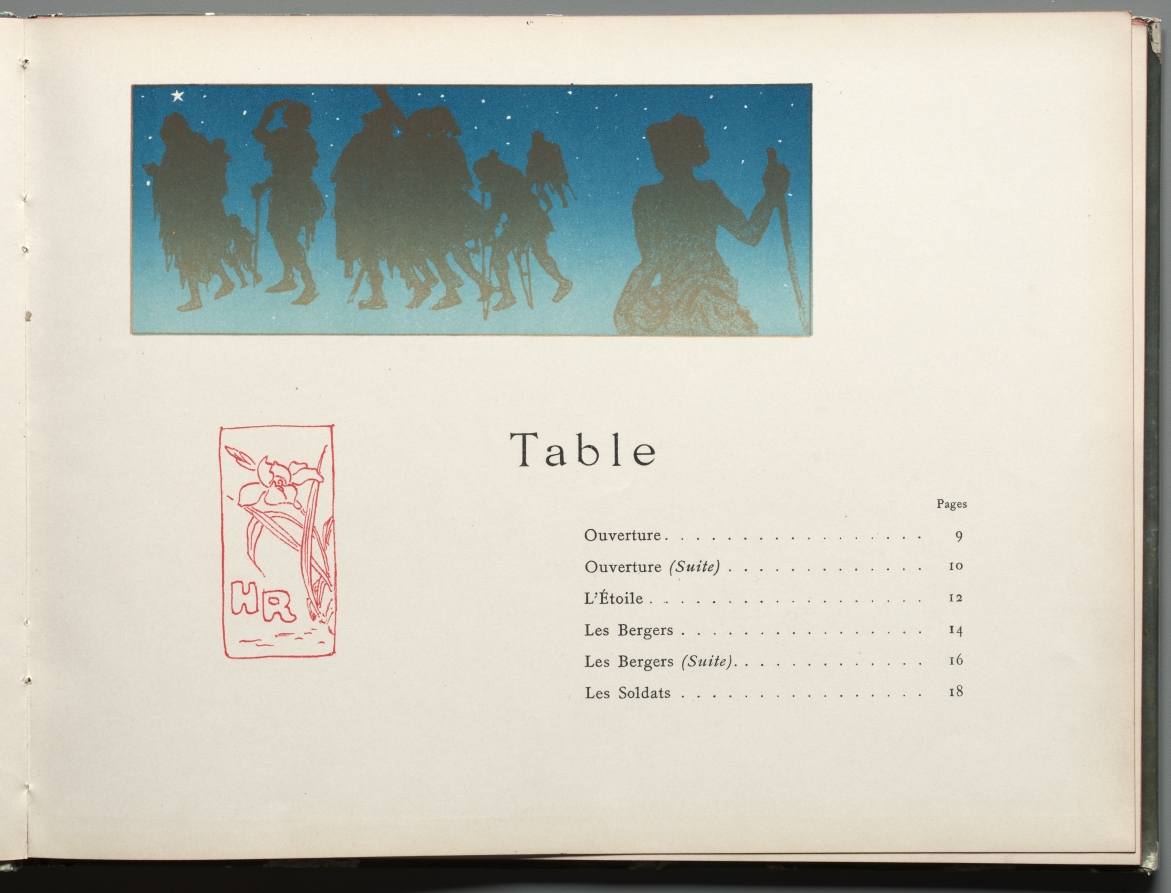 Functioning as both artistic statement and organizational tool, the table of contents demonstrates Rivière's attention to the total design concept of this multimedia artistic endeavor.