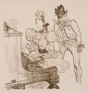 This 1900 lithograph by Henri Toulouse-Lautrec showcases the artist's characteristic bold graphic style, printed in black olive-green ink on Simili Japon paper in a limited edition of approximately 50 impressions. The work exemplifies Toulouse-Lautrec's fascination with Parisian entertainment and popular culture, capturing the dynamic energy of the polka dance that captivated Belle Époque audiences. This impression bears the Gross Collection purple rubber stamp verso, attesting to its distinguished provenance and making it a significant example of the artist's prolific lithographic output from the final decade of his career.