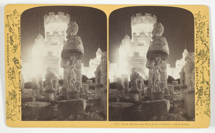 Snow figures and East front of Palace, night scene, No. 1551 from the series "St. Paul Ice Carnival"