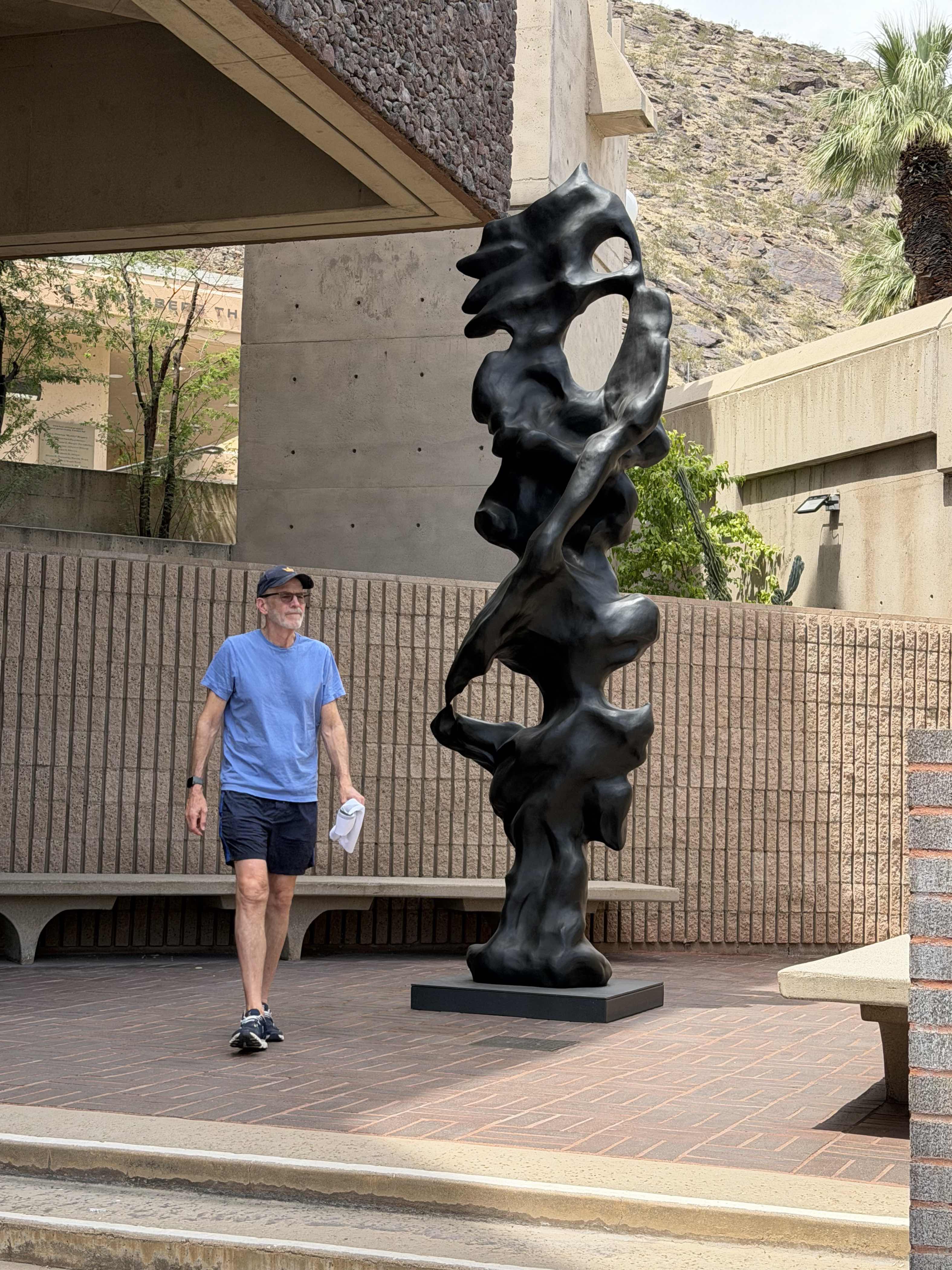 Borofsky creates large scale figurative bronze sculptures that embody universal human archetypes and states of being, much like Alpert's warrior figure communicates strength and symbolic identity. His expressive treatment of the human form in bronze shares the bold and emotionally charged quality found in Alpert's sculptural practice.