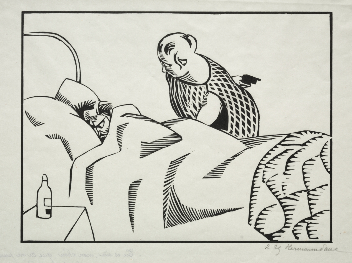 Dark humor permeates the stark black-and-white composition, reflecting the artist's biting commentary on medical indifference during wartime.