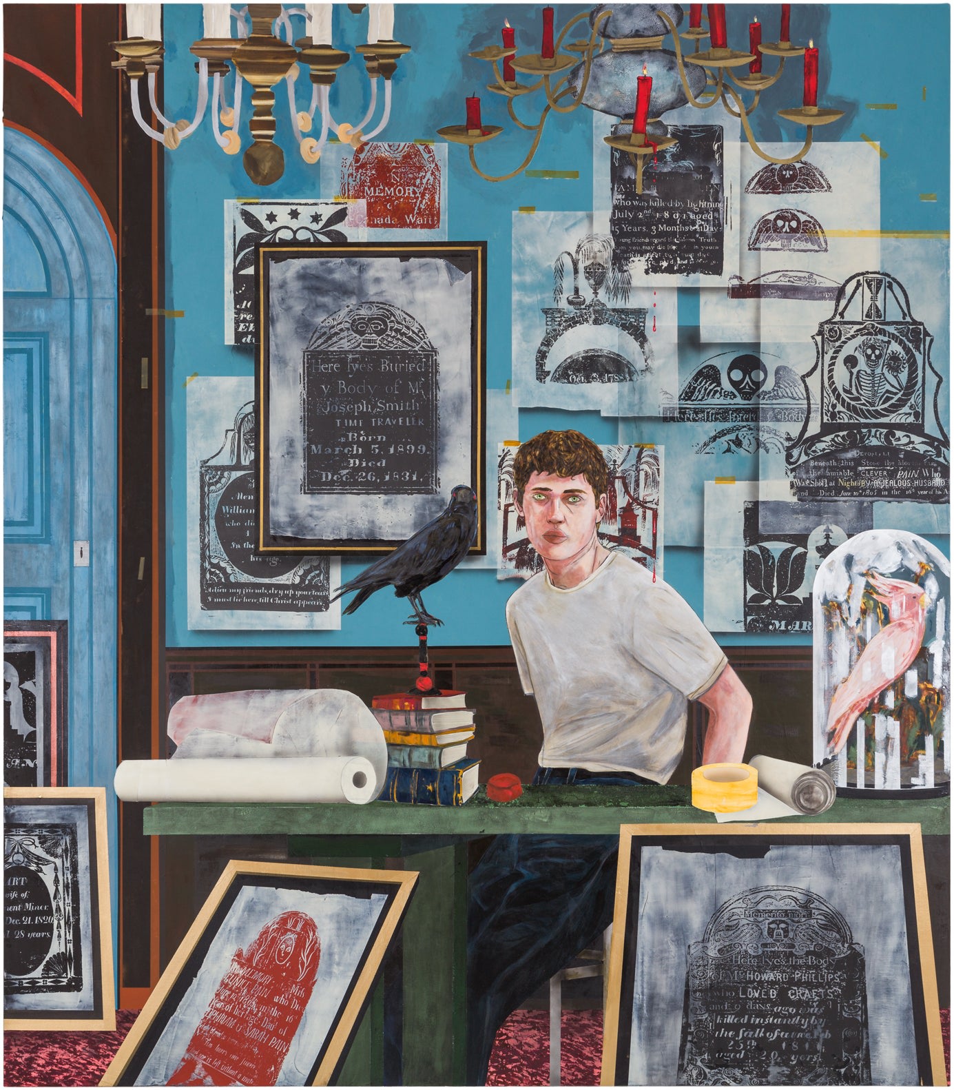 Hernan Bas' 'Conceptual Artist #6' from 2022 combines acrylic and silkscreen on linen, with the artist creating fictional biographical narratives through assembled imagery. The work playfully interrogates identity and artistic practice through visual collage and conceptual strategies.