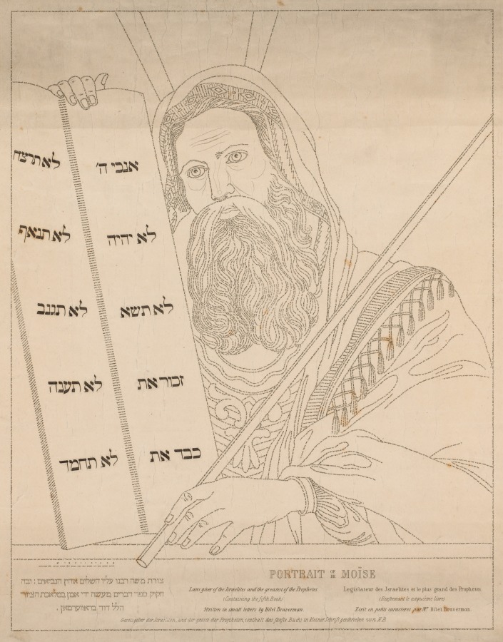Ancient Jewish micrographic tradition transforms portraiture into sacred text, with Hebrew letters forming facial features and clothing details.