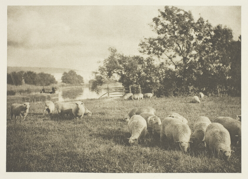 Wellington's pastoral study exemplifies the pictorialist aesthetic, using soft focus and careful composition to create painterly effects in the photogravure medium.