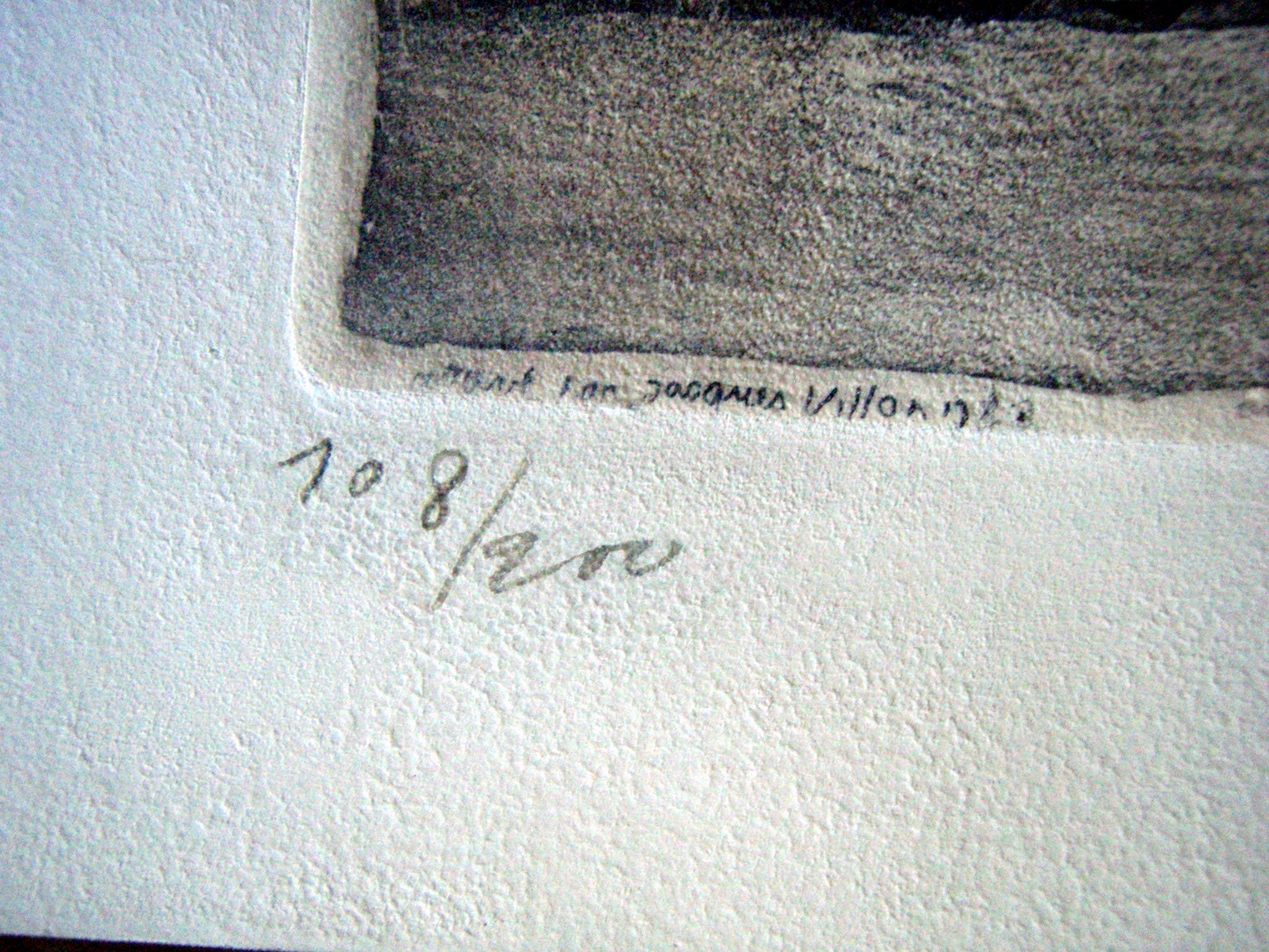 This elegant etching and aquatint demonstrates Jacques Villon's mastery of printmaking technique during the early twentieth century, a period when the artist was increasingly recognized for his refined handling of still life subjects. The composition reveals Villon's characteristic approach to Nature Morte, where carefully arranged objects are rendered through delicate lines and subtle tonal passages created by the aquatint process. The artist's signature confirms this as an original work from the hand of the French master, whose prints were highly sought after among collectors for their technical sophistication and intimate domestic sensibility. Villon's approach to the still life genre combines observational precision with an underlying formal geometry, creating works that reward close study and extended viewing. The interplay between the crisp linear elements of the etching and the softer modulated tones of the aquatint creates depth and atmosphere within the intimate tabletop world. For collectors seeking important examples of early modernist printmaking, this Nature Morte represents a significant opportunity to acquire a work by an artist whose influence on twentieth-century printmaking remains substantial and whose editions have maintained their desirability among serious print connoisseurs.