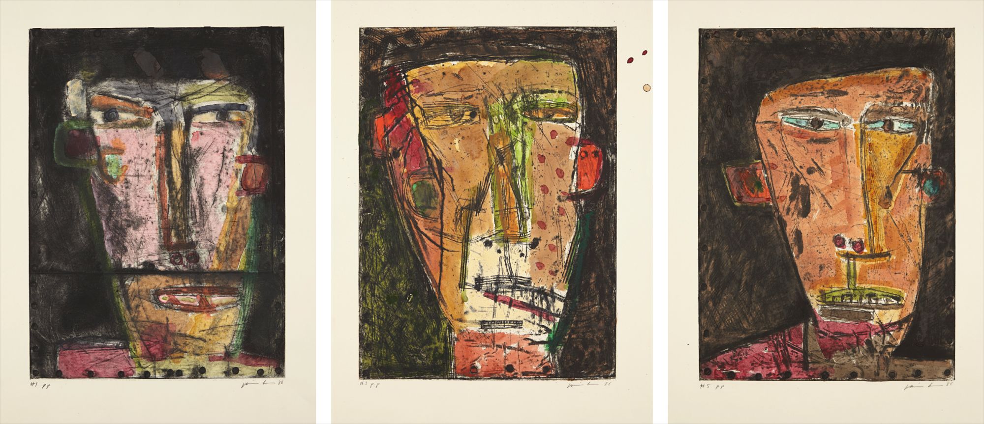 - Three etchings with watercolor, on Somerset paper, with full margins,