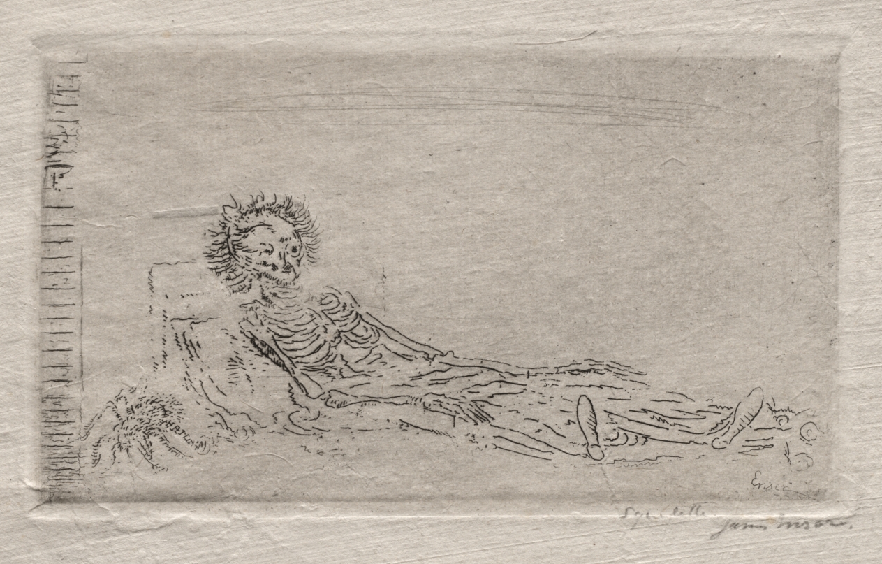 Created twenty-eight years before the actual date, this prophetic self-portrait etching reveals Ensor's fascination with time and identity through its deliberately anachronistic title.