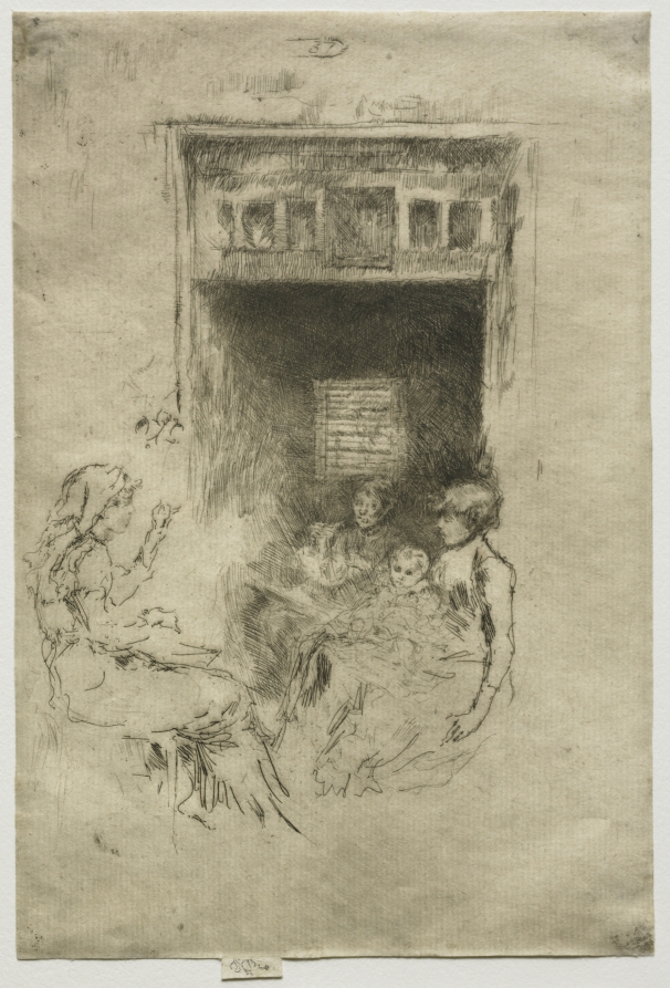 Venetian street life unfolds in this etching that captures the quiet industry of local craftspeople with the observational sensitivity that marked Whistler's Italian sojourn.