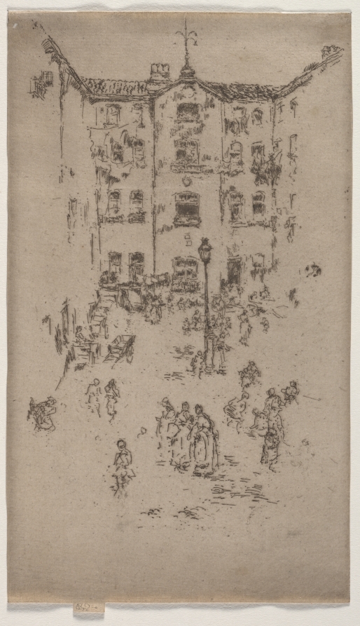 Created during the same Brussels period as 'Palaces, Brussels,' this intimate courtyard scene demonstrates the artist's interest in both grand and modest architectural subjects.