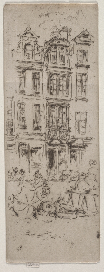 Among Whistler's Continental European subjects, the print reveals his ability to find artistic beauty in everyday commercial scenes through masterful compositional balance.