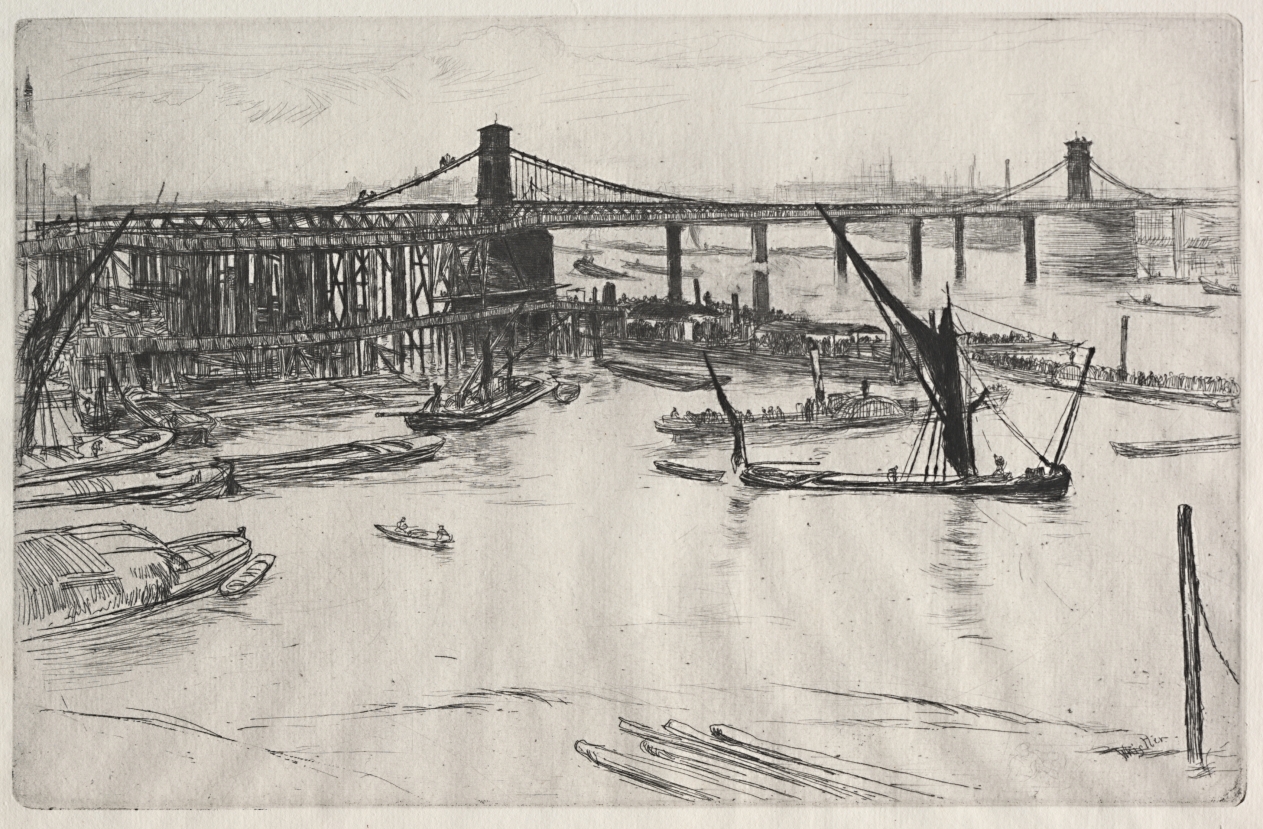Documenting a soon-to-be-demolished London landmark, the etching captures both the romance of the Thames and the city's constant architectural transformation.