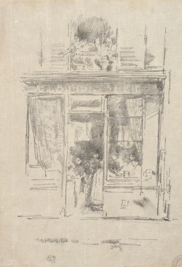 Working woman portrait reflects Whistler's democratic artistic vision while showcasing the transfer lithograph technique's capacity for detailed rendering.