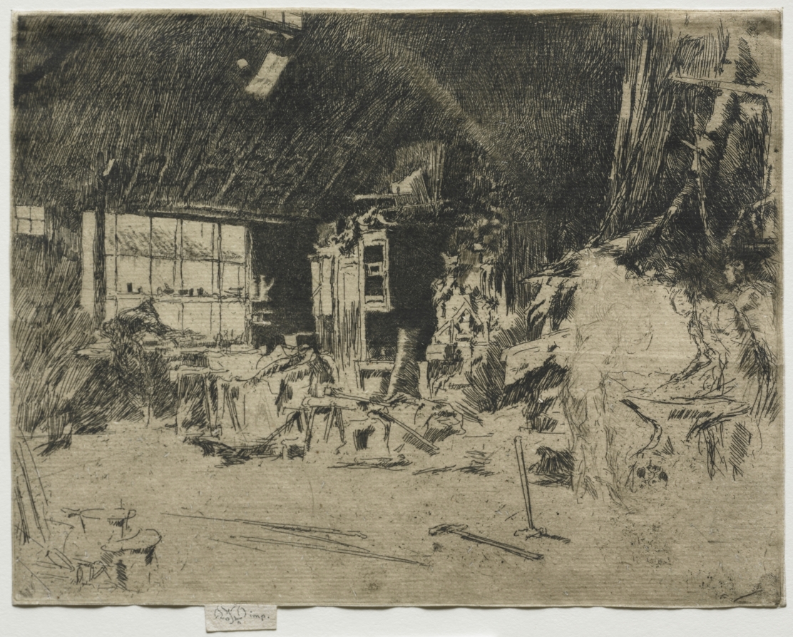 Created during Whistler's transformative Venice period, the print showcases his ability to find poetry in humble working-class subjects through refined etching techniques.