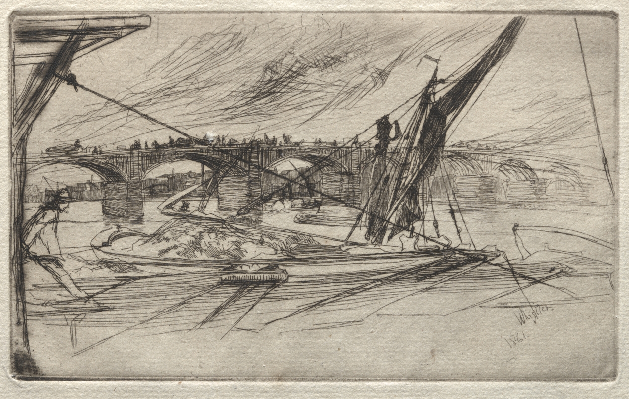 Industrial infrastructure becomes the subject of artistic beauty in this Thames-side view, marking a revolutionary moment when modern engineering entered the realm of fine art.