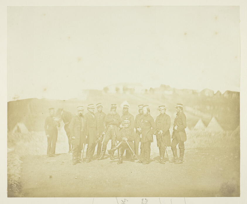Captured during the Crimean War, this albumen print documents military personnel with the stark documentary precision that made Robertson one of the first war photographers.