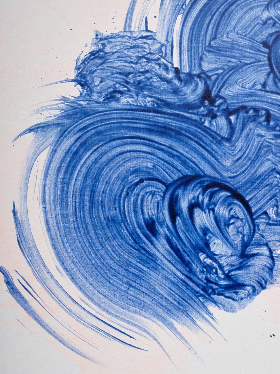 An oil on canvas painting demonstrating sophisticated abstraction with fluid forms and dynamic color relationships. The work exhibits bold gestural marks and emotional intensity.