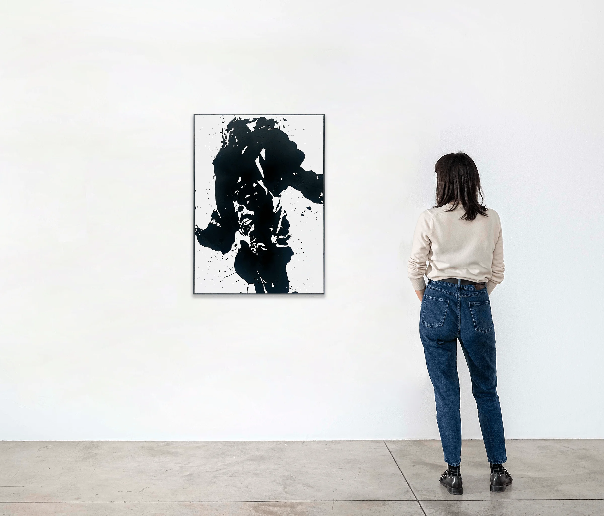 This work employs tar-soaked found garments applied directly to paper, creating an evocative visual language rooted in Arte Povera principles. The uncontrolled staining produced by the tar-dipped coat generates ghostly impressions that blur the line between painting and object, abstraction and figuration. The artist transforms mundane, discarded clothing into profound aesthetic statements, investing everyday materials with spiritual and temporal significance. The black tar creates haunting silhouettes that suggest absence and presence simultaneously, transforming the banal into the poignant. This piece exemplifies the post-war European commitment to radical material experimentation as a means of social and artistic critique.