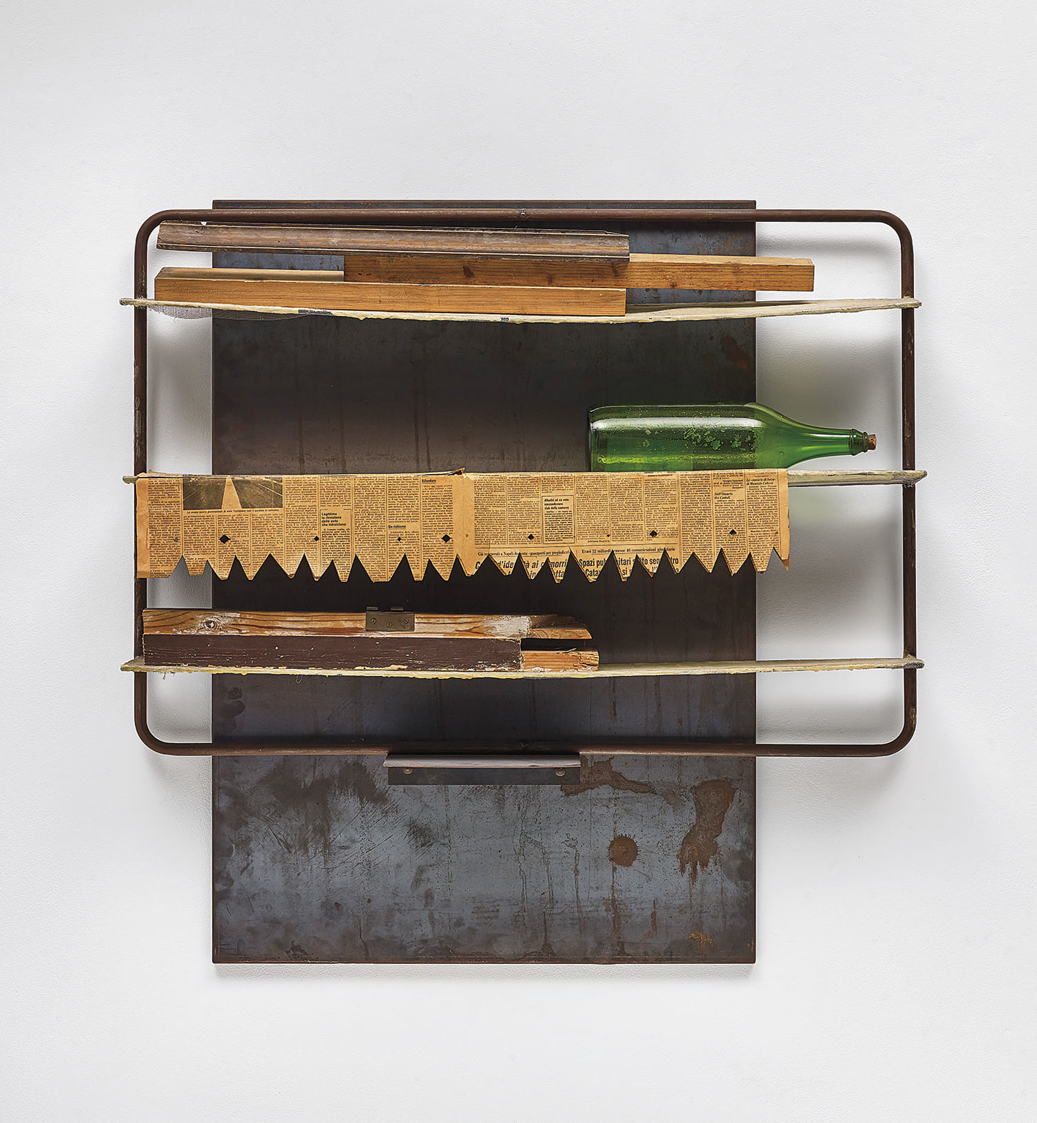 Jannis Kounellis's 'Senza titolo' (Untitled) from 1984 is an untitled work typical of the artist's practice. Kounellis was known for his conceptual and often installation-based approaches.