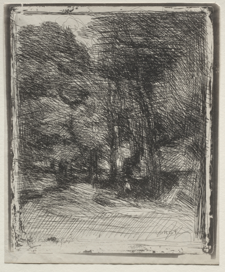 Named after a famous location in the Forest of Fontainebleau, this cliché-verre exemplifies the Barbizon School's dedication to direct observation of nature while showcasing Corot's mastery of atmospheric effects.
