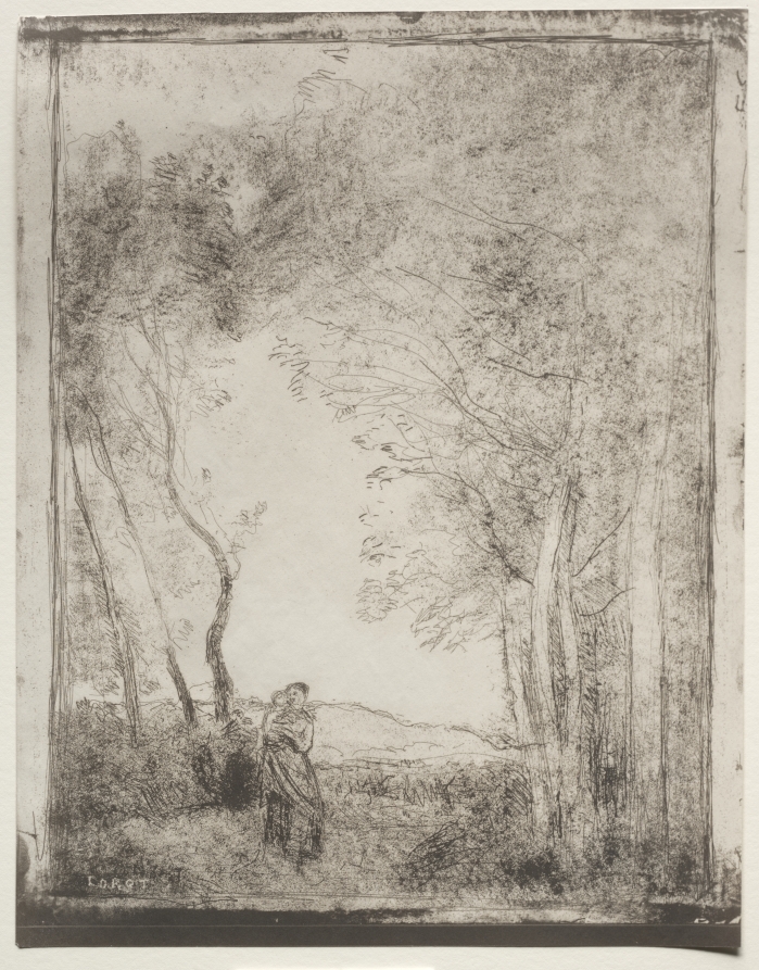 Created using the innovative cliché-verre technique—drawing on a glass plate coated with an opaque ground—this work showcases Corot's exploration of combining photography and traditional printmaking to achieve painterly effects.