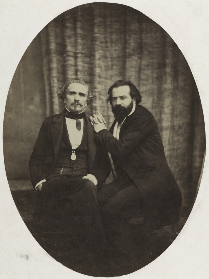 Early photographic portraiture captures the theatrical world of mid-19th-century Paris, utilizing the wet collodion process that produced sharp detail and rich tonal range in albumen prints.